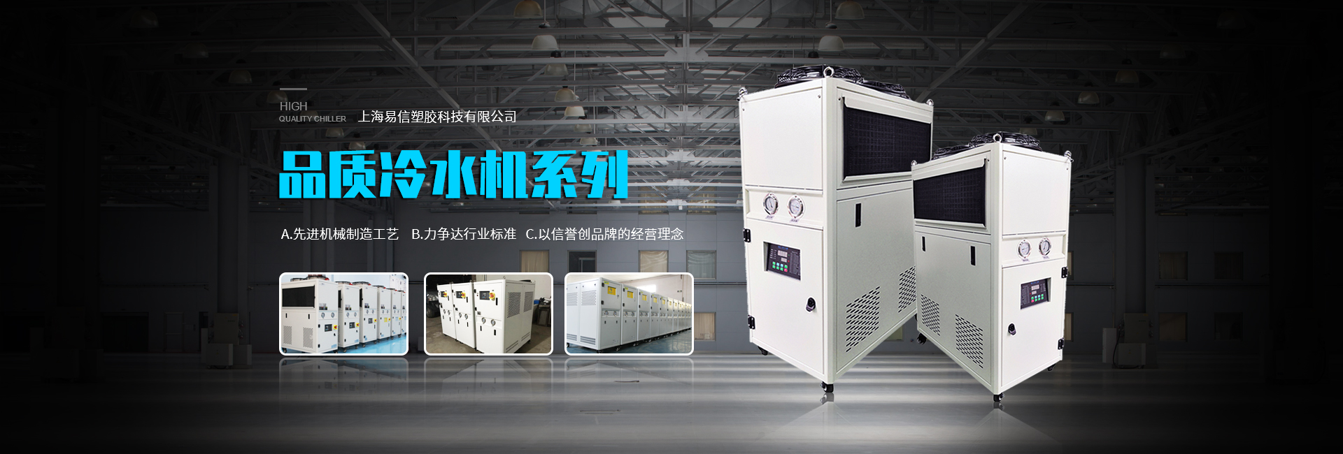 我们专业生产销售冷水机、模温机、除湿干燥机、粉碎机、拌料机、上料机等,提供塑胶成型辅助设备系统化对策。现为多家出口企业代工,专业的生产及销售成本控制,为您提供强有力的市场竞争支持,让您没有后顾之忧!